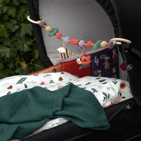 De Sebra Pixie Land Wagenspanner is een vrolijk speeltje dat je eenvoudig kunt bevestigen aan de kinderwagen of autostoel. Aan de wagenspanner hangen verschillende gehaakte figuurtjes in mooie kleuren die je kindje erg interessant zal vinden. Dankzij de handige clips aan de uiteinden kan je de wagenspanner makkelijk vast maken. Verder is het speeltje gemaakt van hoogwaardig materiaal en ideaal voor onderweg.